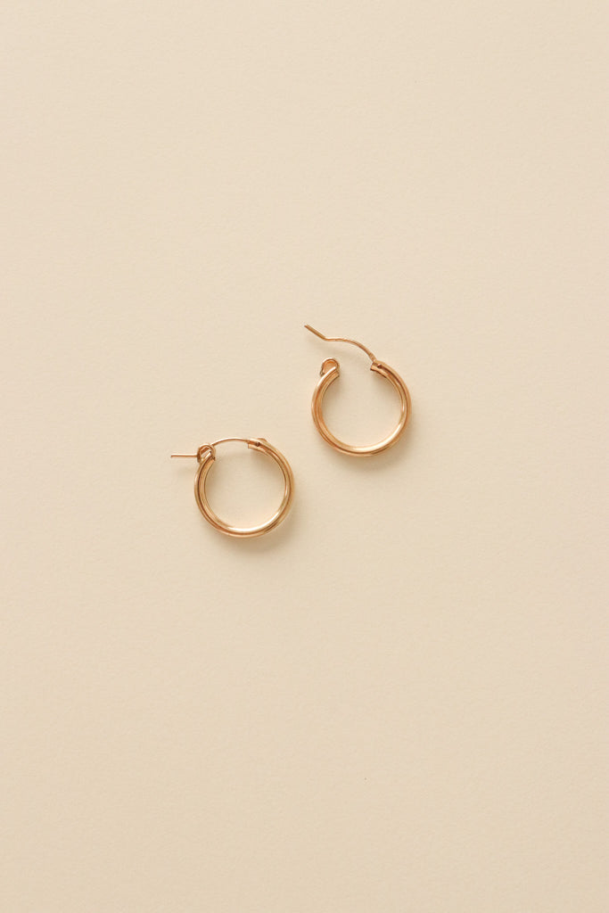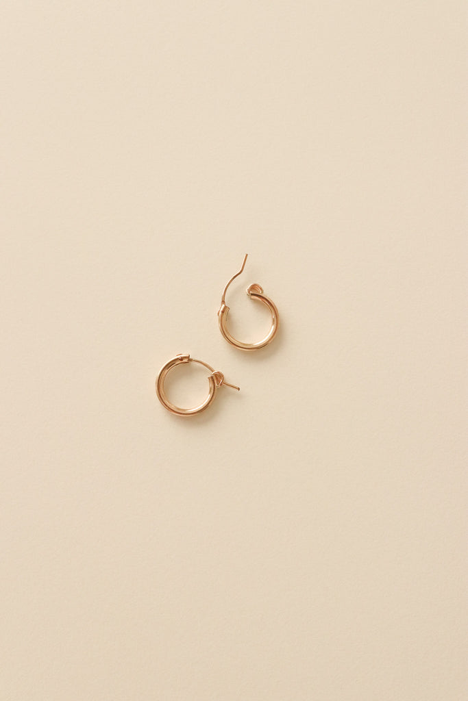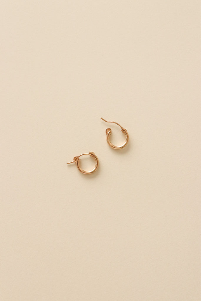 These dainty, 14k gold filled hoops are light, simple, and effortless. They are comfortable to wear from morning coffee to dinner out, their minimalist design pairs with any outfit. Durable enough for daily life, these timeless hoops are easy to love. These are the kind of earrings you reach for day after day.